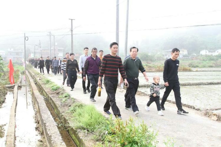 2019年3月21日,春分时节,春暖花开,阳光明媚。梅州市梅县白渡镇嵩山村喜气洋洋,锣鼓喧天。江南吴氏始祖宣公世系九世祖嵩山村开基一世祖念一郎公迁居惠东县等地后裔为感恩祖德,让祖德流芳,发扬中华民族的优良传统,由惠东吴氏宗长帝恩、耀深、培景、贵星、国新、木钦等成员组织江南吴氏始祖宣公世系十五世祖嗣贤公(宝口、新庵、秋长、白石)、嗣椿(增光)、嗣端(松坑)后裔一行36人组成近十辆车队前往梅县白渡镇嵩山村开基一世祖念一郎公墓地,进行扫墓拜祖活动。