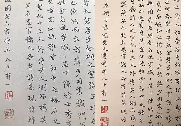 佳士得卷(左)与上博卷(右)袁枚、戴兰英及恩官