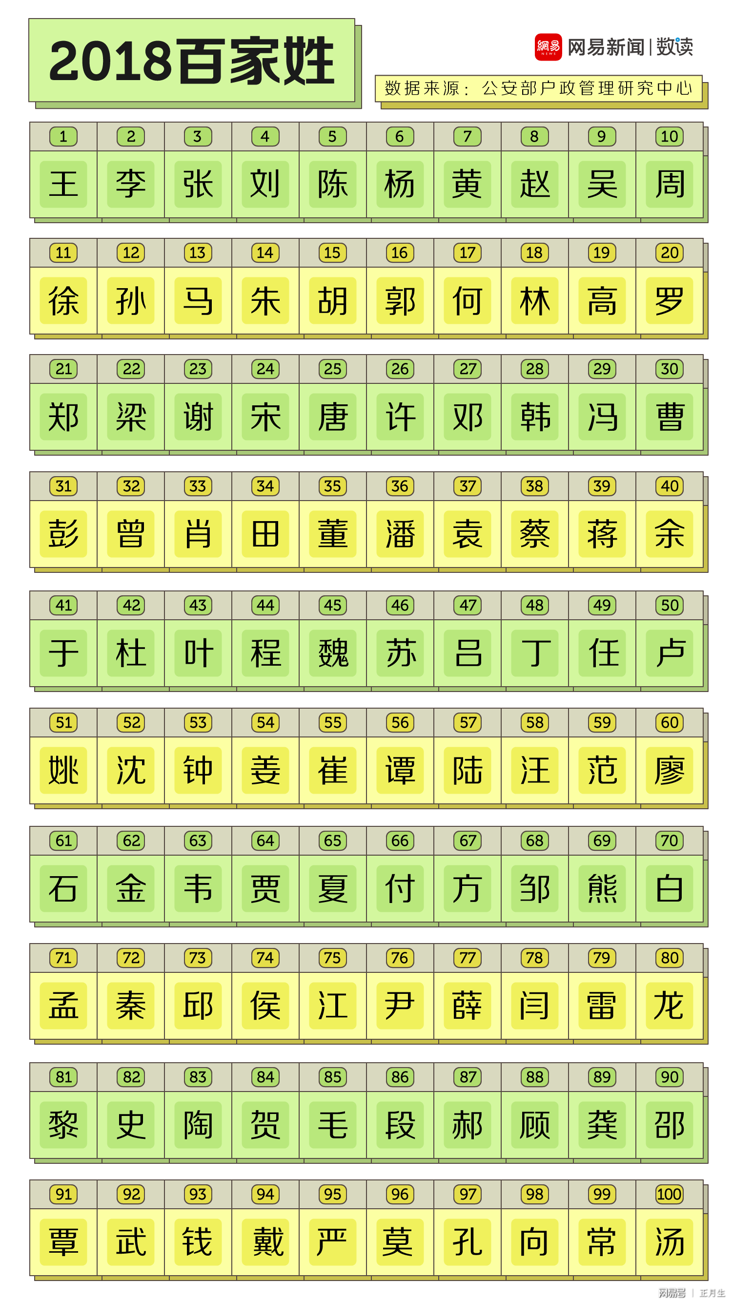 之前的百家姓排名是按照社会地位,以及为了容易记忆,读起来上口,而现在的百家姓则是按照人数来排,这也说明了相对于之前的尊卑有序来说,现在还是比较平等的。