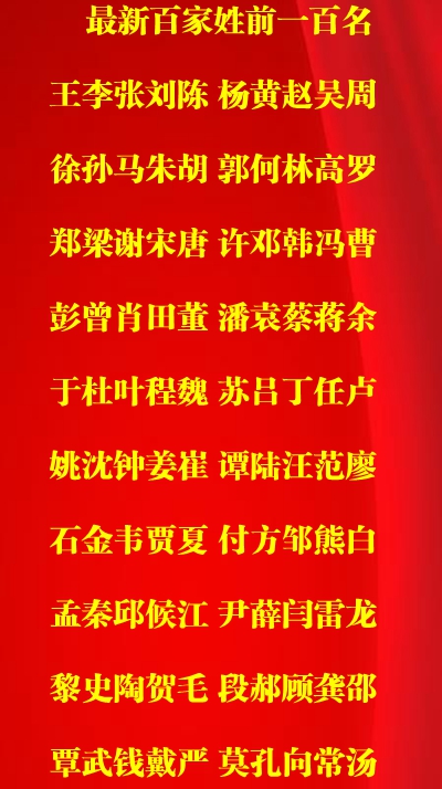 在新的百家姓中,王姓以1.015亿人为第一大姓,第二的李姓则1.009亿。