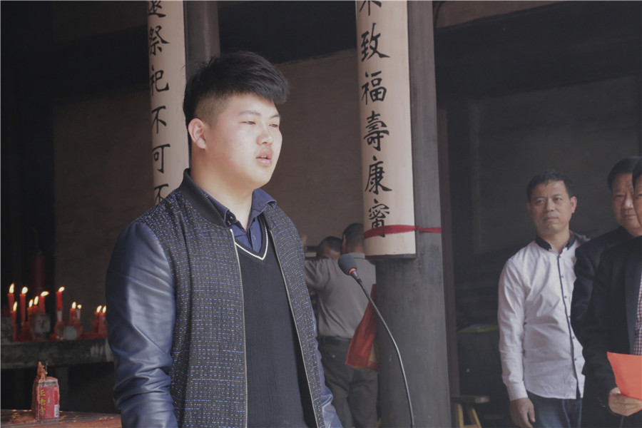 上午11点08分,曹氏宗祠门口礼炮阵阵,鼓乐齐鸣,曹氏后人相继到祠堂里进行献酒献供品、诵读祭文、鞠躬跪拜、上烛进香等仪式,共襄盛典,祝福孙氏子孙繁衍昌炽。