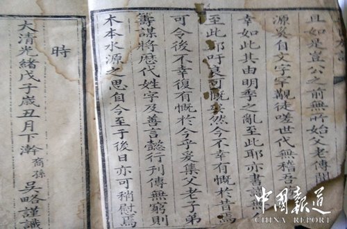 “因《吴氏族谱》仅记载有10代世祖,即“萬、自、任、洪、曰,永、登、文、学、昌”。本次修谱从第11代至15代即“遵、居、陶、密、省”,其余16至20代“直、慎、甚、云、襄”后辈们只能列排族谱中。届时他们或许进行第三次续谱”接力,吴蜀丰说。
