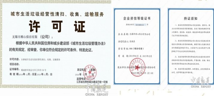 “以心血炼精品,以人品铸品牌”!13年来,顺心保洁先后通过了“道路运输经营许可证”、“从事城市生活垃圾经营性清扫、收集、运输服务许可证”、“ISO9001质量管理体系认证”、“ISO14001环境管理体系认证”、“ISO18001职业健康安全管理体系认证”、“安全生产标准化三级”、中清协“国家一级证书”、并荣获天长市争创全国文明城市“突出贡献单位”、“重合同守信用AAAAA企业、信用等级认证AAAAA企业、质量服务诚信AAAAA企业”、“无锡市重合同守信用企业AAA级”、江苏省广播电视总台“江苏省优质服务品牌”、“最具责任感优质服务单位”、“江苏省优秀诚信服务单位”、江苏企业网“江苏最具实力诚信企业”、等各项荣誉证书,以卓越的业绩和信誉创建了顺心品牌。
