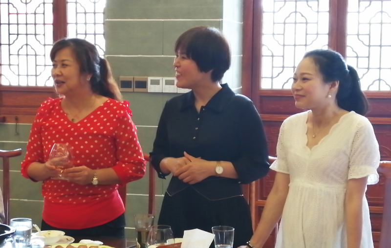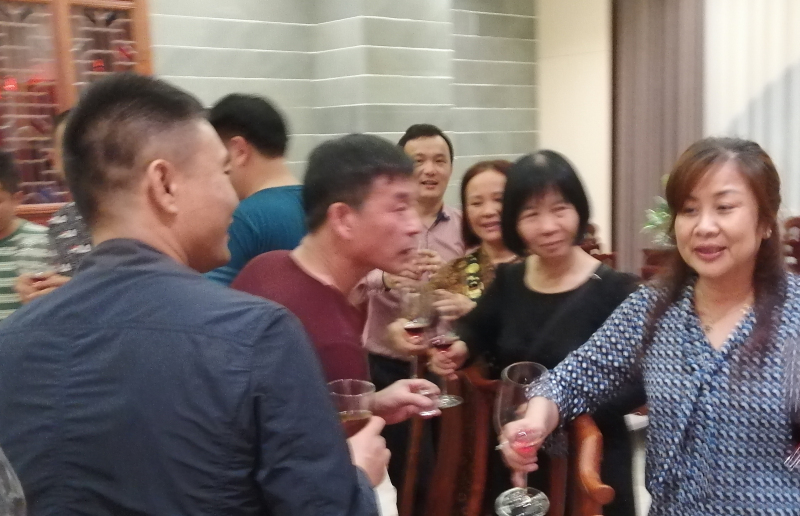 由于来自广州、惠州、梅州的宗亲与来自赣州、北京、厦门、广西的宗亲相互不熟悉,在宴会开始前,大家都做了自我介绍,宴会开始后,大家交杯换盏,共叙宗谊,非常高兴能有这个机会相互认识,很多宗亲都相互交换了名片,并加了微信好友。吴长阳宗长在招呼商界朋友宴会的同时,与宗亲们开怀畅饮,和各地宗长交流宗亲事务。宴会中,吴梁莲宽宗嫂、吴羡霞宗嫂、吴尹水晶宗嫂也向每一位来访宗亲敬酒致意。