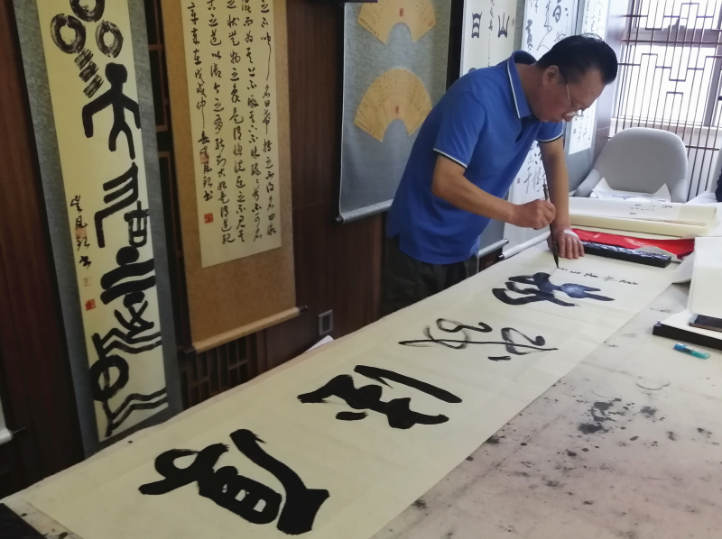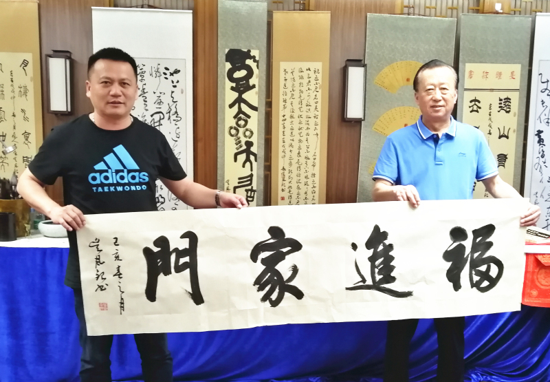 傍晚时分,来自北京、赣州和厦门的宗亲乘坐高铁来到深圳,他们是至德企业文化发展中心常务副主任吴锡伟宗长、赣南吴氏宗亲会会长吴强宗长、厦门吴文化研究会副会长吴先辉宗长、吴金武宗长、厦门吴文化研究会青委会主任、蚁族网CEO吴鹏宗长、厦门吴文化研究会会长助理吴上炫宗长,以及他们的朋友莫先生。大约下午五点半钟的时候,这七位宗亲和朋友也来到了海韵大厦吴风银宗长的书法院,参观吴风银宗长的书法作品。深吴会的吴会林宗长也在此时到达海韵大厦,与大家会面。这个时候,吴长阳宗长、吴裕增宗长与商界朋友们的重要会议也结束了,两位宗长赶来与来访的宗亲们会面。