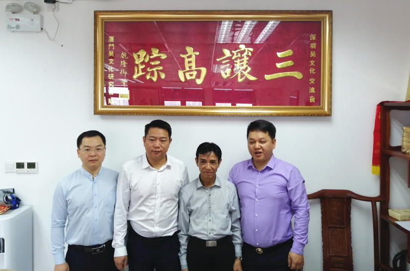 2019年4月20日下午,来自广州的从化、花都、增城、以及来自梅州与惠州惠东县的十八位宗亲,陆续来到了位于深圳龙华海韵大厦的深吴会所,他们是念一公理事会会长吴小淦宗长、粤中吴氏宗亲会会长吴木源宗长夫妇、粤中吴氏宗亲会常务副会长、花都狮岭的吴志均宗长、以及来自花都的吴文峰宗长、吴新权宗长、吴大川宗长、吴庆东宗长、吴耀辉宗长、还有来自增城吴氏宗亲会的族长、广东增城石滩吴氏联谊会会长吴萧麟宗长、以及来自惠东的吴培景宗长,吴国环宗长,吴维芬宗长,吴东强宗长,吴潭飞宗长,吴浪青宗长,吴木钦宗长,吴胜勇宗长。