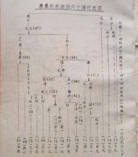 湖北黄冈、鄂州、武汉汪氏,颍川候后。由徽州75世迁来,“尚辉公生于元初,妻张氏生字四,登一、兴一、训一、受一”此为“六祖坟”之“荣华富贵受托”一脉。其中:“贵户”辈分是“ 登景省元胜 子永大廷一 继应世承德 希辅维时思 远绍序从正 手典在克敬”