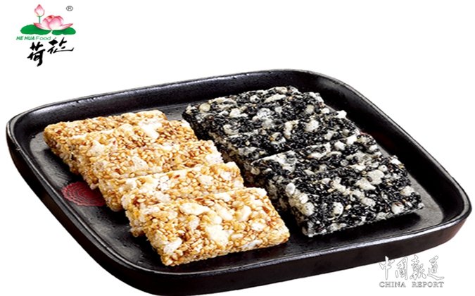 荷花米花糖:采用优质糯米深加工而成,配以极富营养价值的核桃、芝麻、花生、白砂糖和冰糖,以及独特工艺自制的麦芽糖。产品洁白酥脆,香甜化渣,甜而不腻,可直接食用,也可泡牛奶或开水吃,米粒花见水不会变形成粥状。老少皆宜,家居的甜品首选,旅游的黄金搭档。后来荷花人顺应家乡人喜食辣椒和花椒的习惯,开发了早茶味、麻辣味、椒盐味米花糖,以飨巴渝食客,深受大众喜爱。荷花珍珠芝麻片:特别选料,特别配方,特别工艺,特别制作,有突出的芝麻清香,酥脆爽口,色、香、味、形,彰显出珍珠般的高贵品质。荷花怪味胡豆:以其特有的传统工艺,将麻、辣、甜、咸、鲜、酥、脆、香等多种滋味融为一体,堪称巴渝地方传统食品一绝。荷花蛋苕酥:是以鲜鸡蛋和鲜红薯为主材,辅以营养丰富的糯米、棕榈油、麦芽糖和脱皮芝麻仁深加工而成的一款健康零食。因其色泽自然,口味原始,酥脆化渣,粗纤维含量丰富,每一块重量适中,食用方便,是现代办公零食和旅游携带的尚品。荷花芝麻杆:是纯粹的麦芽糖为材料,纯手工制作而成的。色泽微黄,中空外直,杆身均匀,外衣裹以脱皮白芝麻,味道醇正,嚼劲十足,营养均衡。荷花凤凰蛋卷:手工制作,无添加剂,蛋香浓郁。