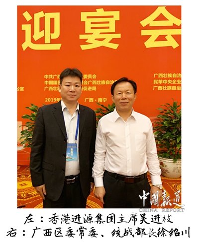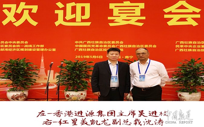 中国报道讯(吴剑波 重庆报道 特约通讯员 覃源)共建陆海新通道,助力广西新发展。2019年5月7日南宁荔园山庄国际会议中心电,香港进源集团主席、广西第一湾股份公司董事长吴进枝,受邀出席民革全国企业家广西交流合作大会。