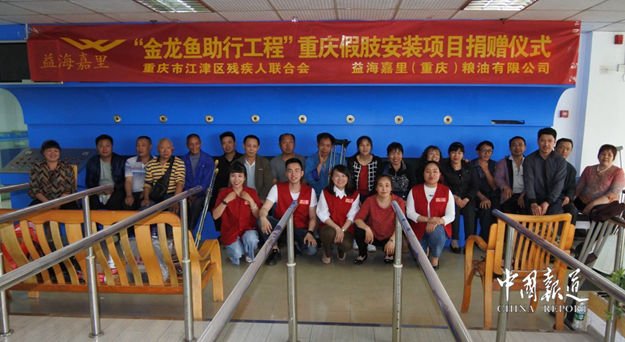 中国报道讯 (李博 重庆报道 通讯员 李定超)在第29个全国助残日到来之际,益海嘉里(重庆)粮油公司向江津区残疾人朋友献上了在份厚礼——捐赠人民币45.8万元。5月11日,捐赠单位在重庆市康复辅具技术中心举行了捐赠仪式,江津区残联主要负责人一行参加了仪式,并接受了捐赠。