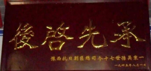 1945年8月1日,吴凤翔在吴氏祠堂亲自题写“承先启后”匾额,落款为“豫西抗日剿匪军总司令十七世孙吴秉一”。如今,这块匾额依然悬挂在吴氏祠堂的正堂内,熠熠生辉。
