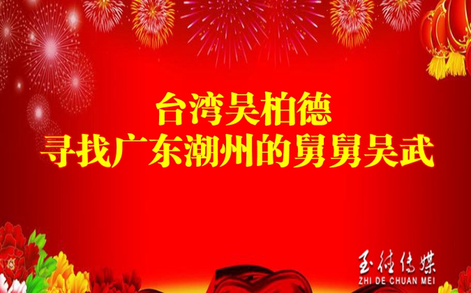 我是吴柏德。稍早有从台湾打您手提。想请您帮忙寻找我在潮州的舅舅吴武(也附上他约莫七年前到泰国的时候给的名片)或他的家人。