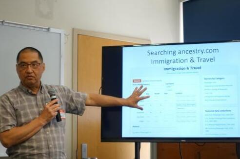 温佑华讲述家族历史搜寻技巧。(图片来源:美国《世界日报》记者金春香/摄影)