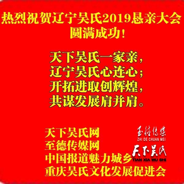 我们衷心祝福2019辽宁吴氏恳亲大会圆满成功!