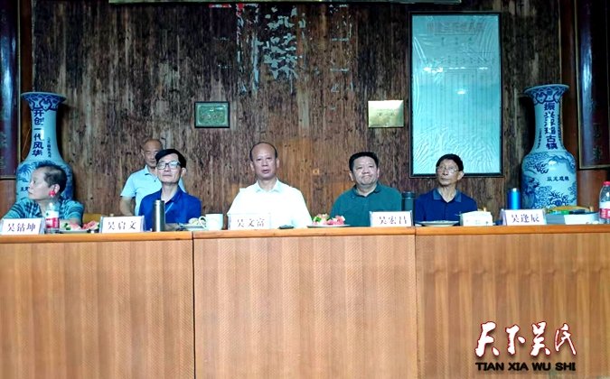 天下吴氏网讯(吴美福 江西报道)芳菲歇去何须恨,夏木阳阴正可人。7月27日,时值酷暑季节,中华吴氏宗亲总会吴文富主席驱车来到江西赣东北革命老区、美丽的贡米之乡、珍珠之乡万年县。受到了赣东北吴文化研究中心,万年县吴姓文化研讨协会的热烈欢迎。尽管天气炎热难耐,大家热情不减,在江西祥国集团会议室,文富主席满怀豪情的谈起华吴的战略构想,已经注册了"品牌联盟‘华吴园’",华吴园的宗旨是为吴氏企业品牌产品的共享平台,共享资源,互惠互利,共嬴未来。全心全意为吴氏宗亲做服务,打造吴氏企业文化经济品牌。文富主席还就华吴园的愿景和运营模式作了较为详细的解说。