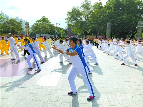 佛山日报讯 记者招钰英摄影报道:7月4日,由石湾镇街道文体服务中心、佛山市太极拳协会和禅城区太极拳协会联合举办的吴氏十二式太极拳汇报展演在亚艺公园举行,两百多名学员展示学习成果。
