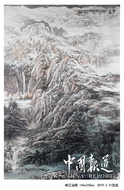 1999年、2017年两次受邀为重庆市高级人民法院创作大型国画《夔门雄峰》《峡江紫气图》。