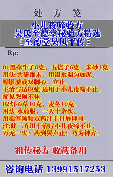 注:此二方用于治疗小儿夜啼不止,万无一失!药到哭声止!乃为神方!