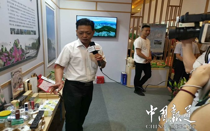 南平市祥寿茶籽科技有限公司总经理吴祥明向嘉宾介绍茶籽系列产品以“弘扬廖俊波精神谱写新时代华章”为主题的“武夷山水”品牌宣介图片展在王府井步行街同时展出,不仅讲述了时代楷模廖俊波的感人事迹,也展现了南平市丰富的旅游资源及特色产品。
