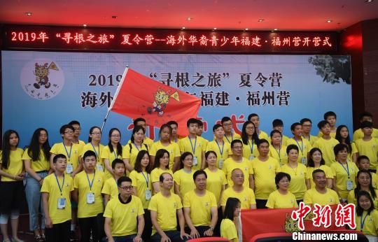 图为7月22日,由中国侨联主办,福建省侨联、福州市侨联承办,福州外语外贸学院和福州市长乐区侨联、美国福建会馆、美国福建侨联总会、日本福州十邑社团联合总会以及爱尔兰华助中文学校共同协办的2019年“寻根之旅”夏令营海外华裔青少年福建?福州营正式开营。 记者 张斌 摄