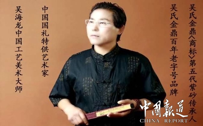 中国报道讯(吴蜀丰报道)吴海龙,国家工艺美术大师,紫砂壶型设计大师,中国国礼特供艺术家,中国文化遗产保护传承人物。