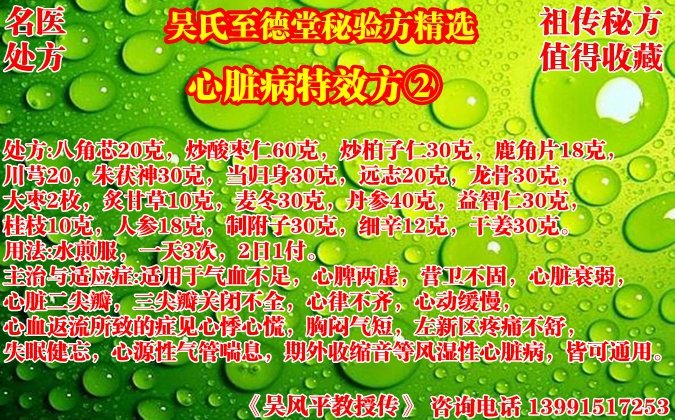 心脏病特效方②吴氏至德堂秘验方精选