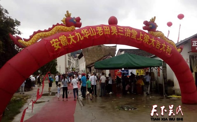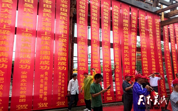 天下吴氏网讯(吴建东安徽报道)栋宇焕新,枝繁叶茂子孝孙贤万代昌;材樑生辉,星光云灿祖业宏开千秋盛!2019年8月11日星期天(己亥年七月十一),迎来了安徽池州九华山风景区老田吴村家族百年难得一遇的祠堂上梁仪式!众多吴氏宗亲有幸参加、见证了这场隆重的吴氏祠堂上梁盛况空前的典礼。