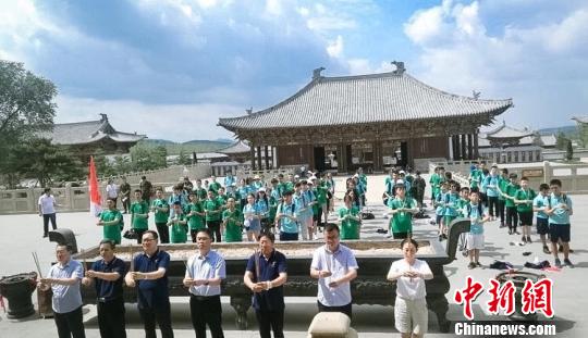 中新网太原7月27日电 (杨杰英 张云)27日,中国侨联“中国寻根之旅”夏令营走进“炎帝故里”山西高平。来自俄罗斯、德国、加拿大等8个国家的40余名华裔青少年和沁水县的40多名学生,来到山西高平炎帝陵开展寻根之旅活动。