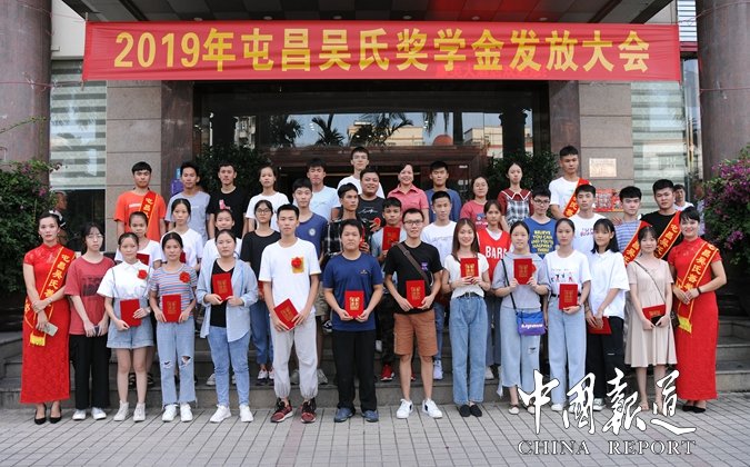 中国报道讯(特约采编吴乾山),2019年8月25日下午,海南屯昌吴氏基金会举行“奖助学”金颁发大会。为弘扬“崇文兴教,尚德育贤”的良好风尚,以奖学来激励更多的吴氏优秀学子,勤奋学习,敦亲睦族。让他们成为,“勤学,爱家,兴邦,和族”的国家栋梁。屯昌吴氏公会、屯昌吴氏基金会,对今年考上大学的优秀学子46名,其中1名研究生,A批27名,B批19名,发放资金7万元,予以荣誉证书和奖励金。