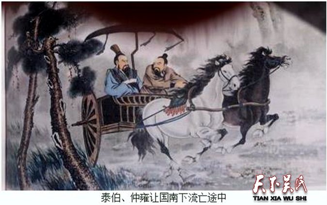 他的孙子姬昌聪颖异常,才华出众,具有王者风范,深得公亶父的欢心和宠爱。公亶父认定孙子姬昌是个兴邦治国的良才,振兴周国的希望,故赞曰:"我世有兴者,其在昌乎。"所以就想把王位传给小儿子季历,才能再传给孙子姬昌。为此把小儿子名字改了,原来季历叫"适","历"与"适"通,"历"与"嫡"通,嫡就是继位者,公亶父把季适改为季历,就是想把王位传给小儿子季历,再传给孙子姬昌。然而,按照传统规定,公亶父驾崩,必由长子继位。为此,公亶父为继位的事心思重重,他非常清楚,继位问题处理不好,就要兵刃相见,兄弟残杀,生灵涂炭,百姓遭殃,骨肉分离。公亶父思前顾后,犹豫不决,常常面带愁容,少言寡语。泰伯见父亲为此事近几年衰老的快,心中非常不安。想起父亲为了不发生战争让出幽地迁居岐山开彊拓土发展壮大部落的榜样,这种让和开拓的基因在血液里燃烧,泰伯也看到了商王朝的暴虐昏庸,民不聊生,为了反商大业,为了周朝振兴,为了园梦父王公亶父的心愿,遂与妻子姜姐,二弟仲雍、万妹夫妇商议继位大事。泰伯说,兄弟之间斗则伤,和者兴,我应该主动让贤,让父亲以和平的方式平稳过渡王权,实现兴周除商大业,所以,我们兄弟要出走。正好,以为父亲釆药为名,托言往衡山去釆药,大家一致赞成。于是立即准备了马匹、干粮和行李,还有随行人员。临行前泰伯老婆提出不要走得太远,父亲身体不好,万一有个什么,就能很快找得到。在商朝末期(约公元前十二世纪未)春季的一天,兄弟一行悄悄地离开了岐山周塬。
