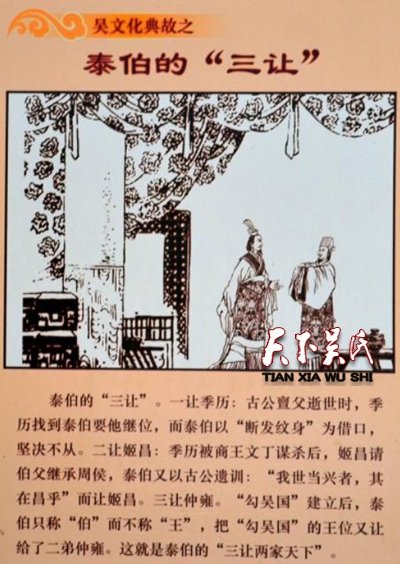 泰伯"数千里"长征的东奔,是中华文明史中的重大事件,是中华民族道德史的里程碑,由此,开启了江南灿烂的文明。“三让家风高万古,鼎隆基业传百世。”