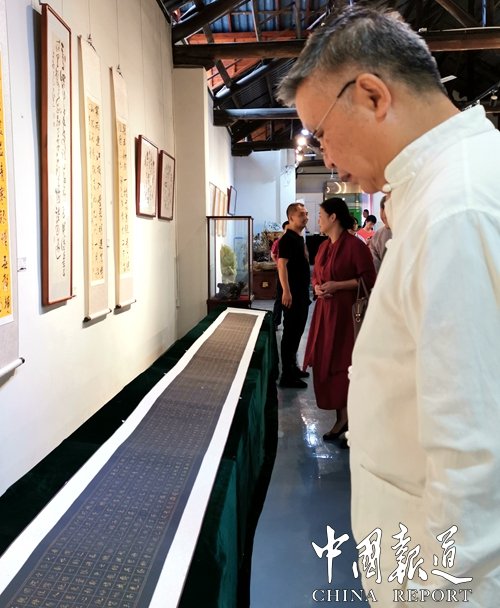 中国报道讯(吴蜀丰报道)今天(8月31日)上午,在中国·贵阳·板桥艺术村举行了一场书法展吸引了众多的市民,陈石、刘惠浦、黑卫平、刘奇卡、王烈君等诗书画名家也到场祝贺,这场由贵州省文史馆主办的左右先生【书法展】预计将展出一个月。