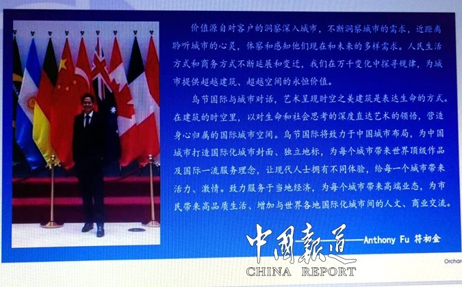 中国报道讯(吴蜀丰)乌节国际是新加坡一家国际性大型商业地产企业,董事局主席符初金(Anthony Fu)家族主营业务涉及酒店管理、物业管理、商业经营、城市更新、高端物业开发、不动产担保等诸多领域。目前符氏家族·乌节国际集团项目覆盖全世界36个国家,具有国际视野、专注品质。
