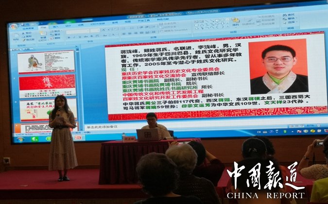 中国报道讯(吴蜀丰报道)9月28日,一个很特别的日子。这一天,是重庆图书馆国庆70周年放假之前,九月份最后一堂面对社会的开放式公益讲座,也是中华民族历史上一位令人尊崇的人物,儒家学派创始人至圣先师孔子诞辰2570周年的生日。作为直辖市文化宣传系统高地的重庆图书馆在百忙之中作了一个特别策划,邀请姓氏文化研究学者蒋泷峰先生作为此次重庆图书馆讲座特邀嘉宾,作题为《寻找回家的路.孝慈仁爱与家国同构》专场演讲。早在今年年初,重庆图书馆公益讲座负责人陈昱竹女士就与蒋泷峰先生多次沟通,选定讲座题目,确定本次讲座的主题及内容。数周以前,又一再叮嘱,尽职尽责。