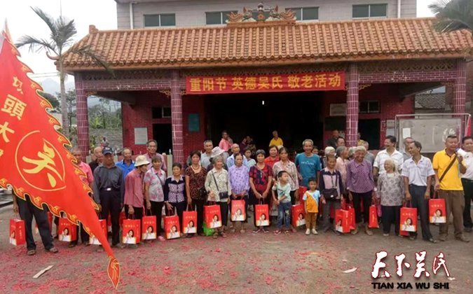 在浓浓欢乐的节日里,广东英德吴氏景头村迎来了第五个敬老的重阳节,英德是吴姓的大市(县级市)有四十六枝系的吴氏宗亲,吴氏人口将近十万,英德吴氏爱心团,今天派出吴祖记、吴文彬、吴桂初、吴德轮、吴基文、吴志彬、吴彩霞、吴国伟等八位代表,参加第二次这这个村的重阳节活动,我们通过一次次的联谊和各种活动,让泰伯公的在天之灵看到他的后裔这么多的宗亲兄弟姐妹们,举办着各种活动。