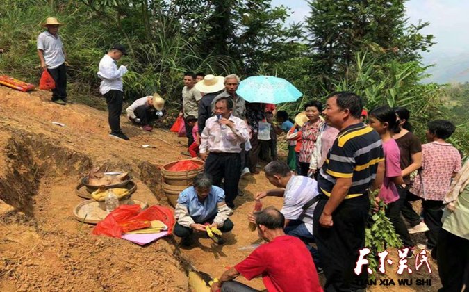 第3路由吴俊生带队,拜祭两个祖墓,①永祥始祖墓(平花下塘冲田面垠);→②王克岭守穆公墓。平花吴氏祭祖筹委会为方便一些年纪大、不开车回来在市区住宿的外地宗亲祭祖,每年都包了两台大巴车在早上六点免费搭载在信宜市区居住的宗亲到平花吴氏宗祠祭祖,祭祖结束又搭他们回到市区。同时请酒家厨师做祭祖午餐,解决他们祭祖用餐问题。