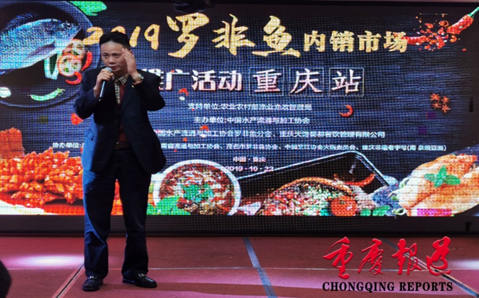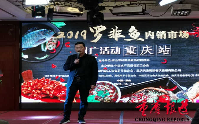 他还说到,重庆作为我国西部唯一的直辖市,餐饮销售总额在全国各城市位居前三甲,是名副其实的“中国火锅之都”、“美食之都”、“山水之城”。这个地方的人十分热爱生活的,淡水鱼和火锅可以说是是他们生活中最不可缺少的两样美食。作为此次活动的主办方,之所以选择重庆作为罗非鱼内销市场推广活动的举办地,就是因为重庆具备了“地利”、“人和”的条件,而我们有“天时”。因此,我们带着老天赏赐的这条“天时”好鱼,来到了“地利”——“地方好,生活佛系”、“人和”——“老百姓热爱生活,喜欢吃水产品”的重庆。