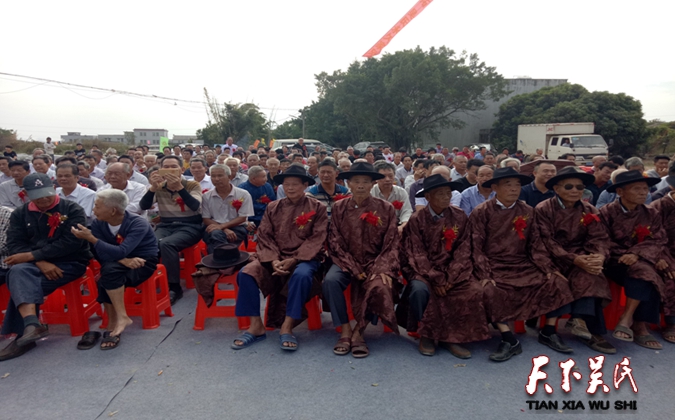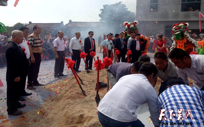 10月31日上午10点半左右,吴善士文化公园暨善士祖祠奠基仪式正式开始。首先是由族亲吴林盛作《吴善士文化公园》简介。接着是,由惠来县吴氏善士祖理事会吴喜钦会长致辞。第三是,由惠来县吴氏总会吴汉林会长讲话。第四是,由旅港潮陽臚溪上厝鄉吳義盛堂同鄉會吴炎逵主席讲话。第五是,由香港泰伯基金会当届会长吴立辉讲话。第六是,由族亲前华南师范大学党委常委副校长、华师大附中校长、现广州中学校长、教育家吴颖民发表感言。第七是,由国家级非物质文化遗产项目“青狮表演”。第八是,进行吴善士文化公园暨善士祖祠建设项目奠基培土。