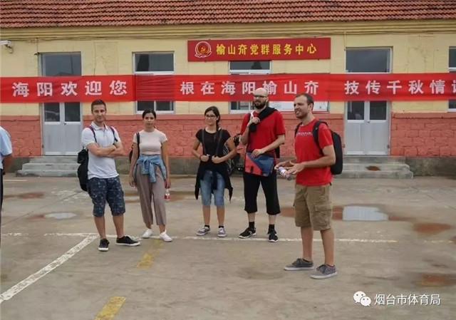 马代欧是来自卡利亚里的哲学博导,今年,他和同伴安德烈、海伦、亚历山大和芬蒂克一起来到中国,参加了烟台国际武术节的开幕式。随后,他们又慕名来到海阳市榆山夼村,参加了14日的螳螂拳寻根问祖行。
