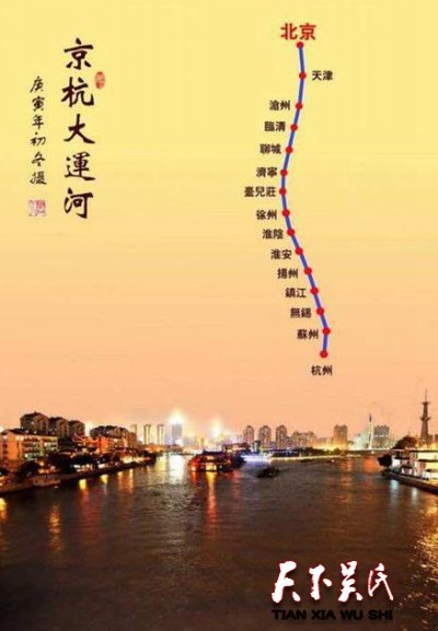 京杭大运河最早就是夫差开凿的邗江,在夫差的观念中认为开凿邗江是为中原人造福祉,亦是向中原人展示吴国的强大的国力和科学技术的先进。后来,吴王夫差又开凿了一条北连沂水,西通济水的运河,即是后来《汉书》中说的菏水。这条运河沟通了济水和泗水,而泗水衔接淮水,淮水与邗江相通,济水源自黄河,也就是说,吴王夫差把长江水系和黄河水系贯通了,这是多么一件非常重大的事件,即便是今天也可以说功业千秋。