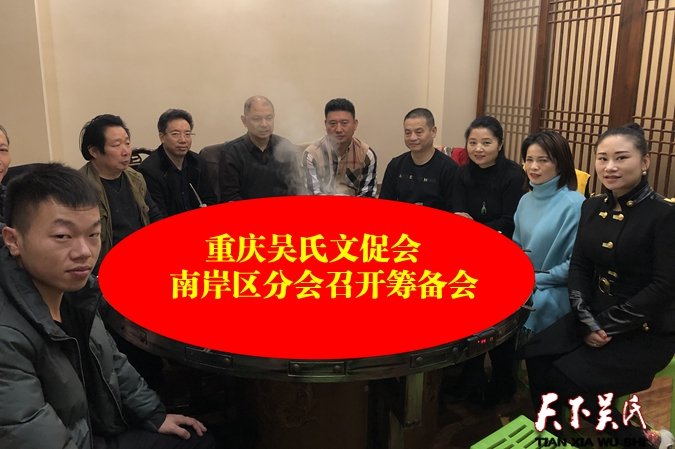 天下吴氏网讯(吴蜀丰)11月30日,重庆吴氏文化发展促进会南岸区分会召开第一次筹备会,重庆吴氏集团董事长、重庆吴氏文化发展促进会会长吴世平,重庆吴氏集团副董事长兼党委书记,重庆吴氏文化发展促进会监事长兼书记吴晓非,重庆吴氏集团监事长、重庆吴氏文化发展促进会副会长、常务副理事长吴明,重庆吴氏集团副总裁兼行政事业部部长、重庆吴氏文化发展促进会副秘书长、常务副理事长吴丹,天下吴氏网总编辑、重庆吴氏集团宣传部部长、常务副理事长、重庆吴氏文化发展促进会秘书长吴蜀丰应邀参加筹备会并先后发言,重庆吴氏文化发展促进会南岸区分会吴德洪、吴婷蓉、吴晓垌及重庆吴氏文化发展促进会彭水分会的吴磊等宗代表参加筹备会。