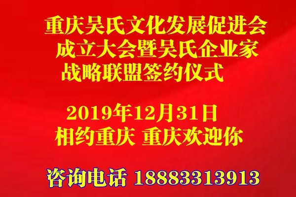 天下吴氏网讯(渝吴会)12月15日,重庆吴氏文化发展促进会再次迎来双喜临门的日子,重庆吴氏文化发展促进会巴南分会和三峡库区万州分会群团聚喜相逄的好日子。