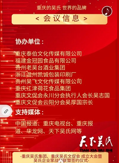 媒体支持:中国报道、重庆电视台、重庆报道、天下吴氏网等