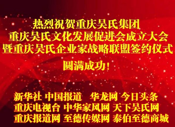 预祝重庆吴氏文化促进会成立庆典圆满成功!