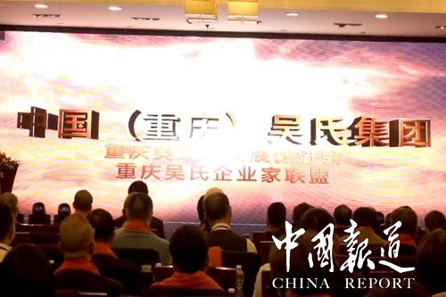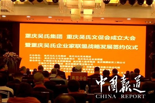 参会代表统一着清一色的西装革履,中国红“重庆吴氏”围巾,引人注目的重庆吴氏文化发展促进会徽章彰显吴氏奋发图强的团队精神。
