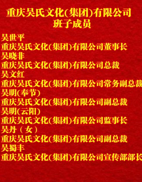 吴文红重庆吴氏文化(集团)有限公司常务副总裁