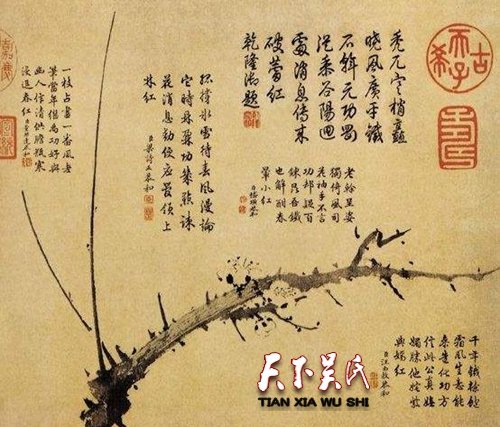 吴镇为人孤傲清高,不愿攀附权贵,一生不进官场为官,对于高官有势力的人求要他的画一概拒绝。喜欢天天徜徉于山水竹石之间,居住的屋四周,栽满了梅树,自号梅花道人,以表明自己的志气。他的主要作品有《古竹不石图》《秋江漁隐图》《清江春晓图》巜双桧平远图》《嘉禾八景图》等等,著作有《竹谱》、诗文集《梅花庵稿》等,后人把其诗集整理成《梅道人遗墨》。是个国宝级人物。