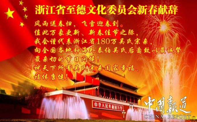 风雨送春归,飞雪迎春到。值此万象更新、新春佳节之际,我会谨代表浙江省180万吴氏宗亲,向全国各地和海外泰伯吴氏后裔致以最诚挚、最亲切的节日问候!祝天下所有吴氏宗亲阖家幸福、福体康健!