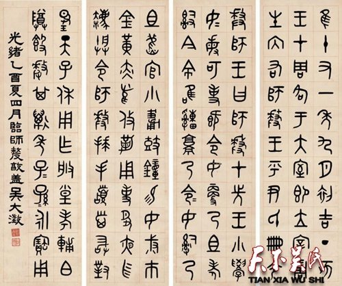 金石大家吴大澂1835年出生的吴大澂,原名大淳,字清卿,又字止敬,号恒轩,另号愙斋,江苏吴县、今苏州人。祖父吴经堃是江南富商,家境富殷,是个爱好文学艺术之人,对吴大澂日后的成长和发展产生了重要的影响。
