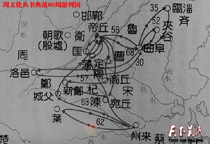 孔子一行从曹国来到宋国时,,遭遇专横的司马桓魋(tuí)的追杀,只好连忙逃跑。到了陈国,居住了一段时间,发现那里形势动乱,不宜久留,孔子便又离开陈国。路过蒲地再次受阻。蒲人要挟孔子说:“如果不去卫国,我们就放了你。”于是,孔子与蒲人盟誓,度过了难关。但是,孔子认为在要挟之下的盟誓是不受神灵保护的,因而他还是去了卫国。这说明孔子是善于变通的。